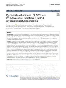 Preclinical evaluation of [18F]SYN1 and [18F]SYN2, novel radiotracers for PET myocardial perfusion imaging