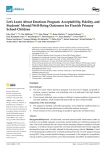 Let’s Learn About Emotions Program: Acceptability, Fidelity, and Students’ Mental Well-Being Outcomes for Finnish Primary School Children