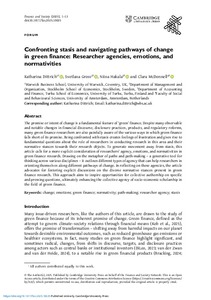 Confronting stasis and navigating pathways of change in green finance : Researcher agencies, emotions, and normativities