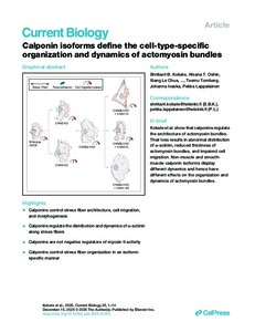 <p>Contractile actomyosin bundles, stress fibers, are important for cell migration, adhesion, morphogenesis, and mechanosensing. Calponin (CNN) family proteins are abundant stress fiber components, but their cellular ... -