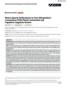 <h3>Background<br></h3><p>Motor–speech skills slow down with age, but health care professionals lack normative data, especially on the vastly growing population of very old (VO) speakers. The execution of different ...