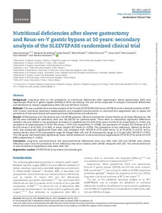 Nutritional deficiencies after sleeve gastrectomy and Roux-en-Y gastric bypass at 10 years: secondary analysis of the SLEEVEPASS randomized clinical trial