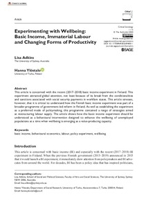 Experimenting with Wellbeing: Basic Income, Immaterial Labour and Changing Forms of Productivity