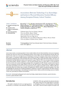 Associations Between Technology Use, Knowledge and Inclusive Physical Education Teacher-Efficacy Among European Primary School Teachers