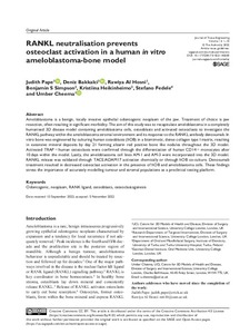 RANKL neutralisation prevents osteoclast activation in a human <i>in vitro</i> ameloblastoma-bone model