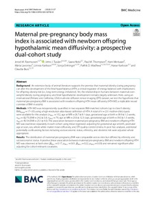 Maternal pre-pregnancy body mass index is associated with newborn offspring hypothalamic mean diffusivity: a prospective dual-cohort study