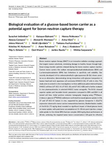 Biological evaluation of a glucose‐based boron carrier as a potential agent for boron neutron capture therapy