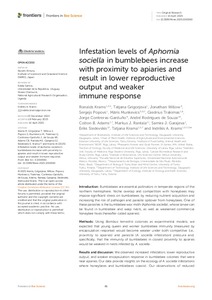 Infestation levels of Aphomia sociella in bumblebees increase with proximity to apiaries and result in lower reproductive output and weaker immune response