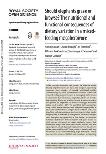 <p>Unlike specialist browsers and grazers, the diets of mixed-feeding megaherbivores are broad and complex, comprising numerous plant species of variable nutritional quality. Understanding key axes of nutritional variation ... -
