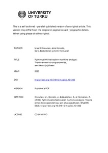 <p><em>A market analysis of Finnish rhythm music festivals: The situation before, during and after the Covid-19 pandemic</em></p><p>Before the Covid-19 pandemic, there were three major trends in the Finnish festival market: ... -