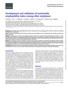 <p>Background Sustainable employability (SE) has become an important factor for keeping people in the labour market and enabling the extension of working life. <br></p><p>Aims We developed and validated an SE index to ... -