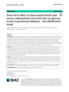 Short-term effect of plant-based Nordic diet versus carbohydrate-restricted diet on glucose levels in gestational diabetes - the eMOM pilot study