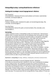 <p>I studien diskuteras bruket av metaspråklig kunskap som framkommer i informanternas reflektion efter en avslutad skrivprocess på två typologiskt olika inlärarspråk (L2), finska och svenska. Det kvalitativt analyserade ... -
