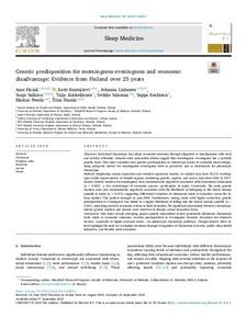 Genetic predisposition for morningness-eveningness and economic disadvantage: Evidence from Finland over 25 years