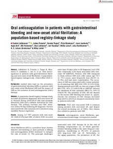 <h3>Background</h3><p>Limited data exist on the prevalence of gastrointestinal bleeding (GIB) in patients with new-onset atrial fibrillation (AF) and the impact of GIB on the initiation of oral anticoagulation (OAC) ... -