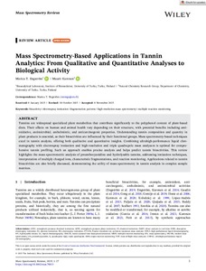 Mass Spectrometry‐Based Applications in Tannin Analytics: From Qualitative and Quantitative Analyses to Biological Activity