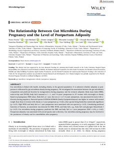 <p>Gut microbiota is linked with health, including obesity, in the general population. It is unknown whether adiposity at postpartum is influenced by gut microbiota already during pregnancy. We investigated the association ...
