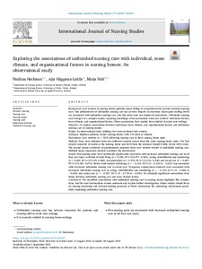 Exploring the associations of unfinished nursing care with individual, team climate, and organizational factors in nursing homes: An observational study