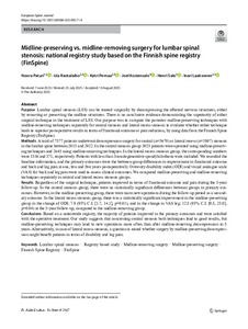 Midline-preserving vs. midline-removing surgery for lumbar spinal stenosis: national registry study based on the Finnish spine registry (FinSpine)