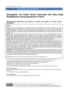 Demographic and Family Factors Associated with Body Image Dissatisfaction among Adolescents in Tehran