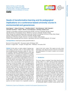 Seeds of transformative learning and its pedagogical implications on a conference-based university course in environmental and geosciences