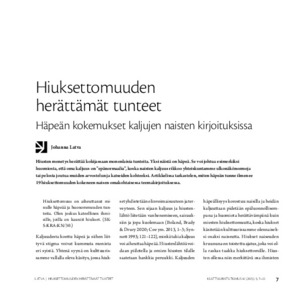Hiuksettomuuden häpeä. Häpeän kokemukset ja niiden merkitys kaljujen naisten kirjoituksissa.