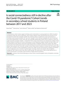 Is social connectedness still in decline after the Covid-19 pandemic? Cohort trends in secondary school students in Finland between 2017 and 2023