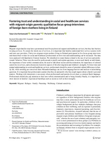 Fostering trust and understanding in social and healthcare services with migrant-origin parents: qualitative focus-group interviews of foreign-born mothers living in Finland