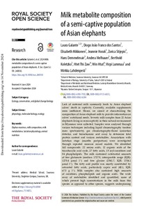 Lack of maternal milk commonly leads to Asian elephant calves' death in captivity. Currently, available supplements seem inefficient. Hence, we aimed at characterizing the composition of Asian elephant milk to provide ... -