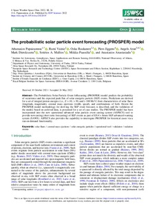 The Probabilistic Solar Particle Event foRecasting (PROSPER) model predicts the probability of occurrence and the expected peak flux of solar energetic particle (SEP) events. Predictions are derived for a set of integral ... -