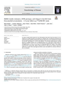 Midlife insulin resistance, APOE genotype, and change in late-life brain beta-amyloid accumulation : A 5-year follow-up [11C]PIB-PET study