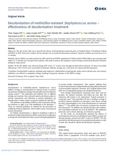 <p><b>Objectives:</b></p><p>The aim of this study was to describe the efficacy of decolonization treatments given in Hospital District of Southwest Finland (HDSWF) in 2007–2016 and to analyze the key elements for successful ... -