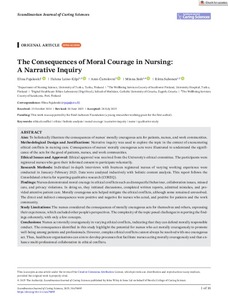 <h3>Aim</h3><p>To holistically illustrate the consequences of nurses' morally courageous acts for patients, nurses, and work communities.</p><h3>Methodological Design and Justifications</h3><p>Narrative inquiry was used ... -