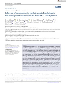 <p>Although osteonecrosis (ON) is a common sequel after childhood acute lymphoblastic leukaemia treatment and may cause debilitating symptoms, its prognosis remains underexplored. We describe the radiological evolution of ... -