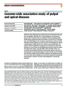 <p>Infections of the dental pulp are common sequelae of microbial activity and host susceptibility, affecting >80% of adult population. We performed a genome-wide association study on endodontic infections utilizing Finnish ...
