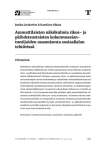 <p>Artikkelissa tarkastellaan kokemusasiantuntijoiden osaamista sosiaalialan ammattilaisten näkökulmasta. Tutkimuskysymykset olivat: Millaista osaamista rikos- ja päihdetaustaisilla kokemusasiantuntijoilla on sosiaalialan ... -