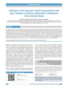 Predictors of Poor Glycemic Control among Patients with Type 2 Diabetes in Southern Afghanistan: A Multicenter Cross-sectional Study