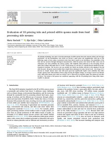 Evaluation of 3D printing inks and printed edible spoons made from food processing side streams