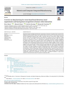 A review on deep learning for vision-based hand detection, hand segmentation and hand gesture recognition in human-robot interaction