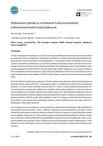 <p>Tämän tutkimuksen tarkoituksena on tuottaa uutta tietoa palliatiivisen hoidon piirissä olevista potilaista ja ennakoivista hoitosuunnitelmista. Tutkimuksen tavoitteena on lisätä ymmärrystä rekisteritietojen hyödyntämisestä ... -
