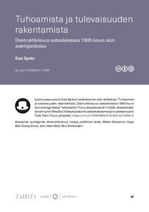 <p>Lectio praecursoria: Essi Syrénin taidehistorian alan väitöskirja ”Tuhoamista ja tulevaisuuden rakentamista. Destruktiivisuus saksalaisessa 1900-luvun alun avantgardessa” tarkastettiin Turun yliopistossa 8.11.2025. ... -