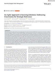 This study examines agile sourcing, an emerging approach to procurement that deliberately incorporates uncertainty to address business challenges. Guided by a critical realist ontology and framing agile sourcing as an ... -