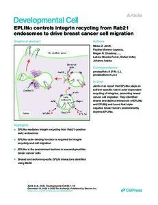 EPLINα controls integrin recycling from Rab21 endosomes to drive breast cancer cell migration