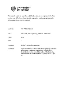 <p>Artikkelissa tutkin diskurssianalyysin avulla, miten media osallistuu aikakauslehtien henkilökuvilla uskonnollisten yhteisöjen maineen episteemiseen hallintaan yhteiskunnassa. Valitut 28 henkilökuvaa keskittyivät pääosin ... -