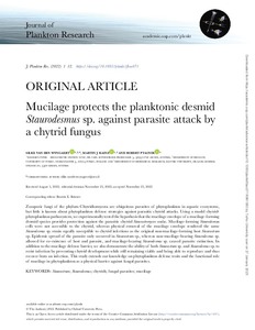 Mucilage protects the planktonic desmid Staurodesmus sp. against parasite attack by a chytrid fungus