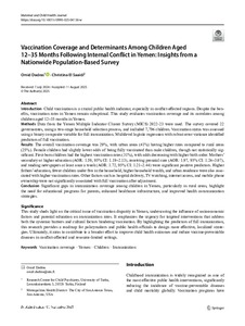 Vaccination Coverage and Determinants Among Children Aged 12–35 Months Following Internal Conflict in Yemen: Insights from a Nationwide Population-Based Survey