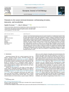 <p>Vimentin, a type III intermediate filament protein, has gained recognition as a multifunctional regulator within the tumor microenvironment (TME). While traditionally considered a hallmark of epithelial-to-mesenchymal ... -