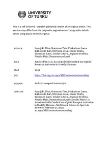 Introduction: Central μ-opioid receptors (MORs) modulate affective responses to physical exercise. Individuals with higher aerobic fitness report greater exercise-induced mood improvements than those with lower fitness, but the link between cardiorespiratory fitness and the MOR system remains unresolved. Here we tested whether maximal oxygen uptake (VO2peak) and physical activity level are associated with cerebral MOR availability and whether these phenotypes predict endogenous opioid release following a session of exercise.