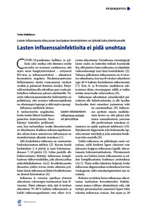 Lasten influenssainfektioita ei pidä unohtaa: lasten influenssasta aiheutuvan tautitaakan keventäminen on tärkeää koko yhteiskunnalle
