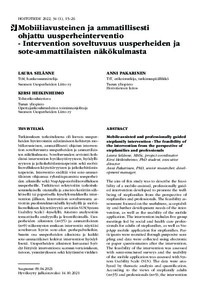 Tutkimuksen tarkoituksena oli kuvata uusperheiden hyvinvoinnin edistämiseen kehitetyn mobiiliavusteisen, ammatillisesti ohjatun intervention soveltuvuutta uusperheiden ja ammattilaisten näkökulmasta. Soveltuvuuden arviointi kohdistui intervention hyväksyttävyyteen, hyödyllisyyteen ja jatkokehittämistarpeisiin sekä mobiilisovelluksen käytettävyyteen ja jatkokehittämistarpeisiin. Interventio sisältää viisi sote-ammattilaisten ohjaamaa ryhmätapaamista uusperheiden aikuisille sekä StepApp-mobiilisovelluksen uusperheille. Tutkittavat rekrytoitiin tarkoituksenmukaisella otannalla ja aineisto kerättiin sähköisellä tai paperisella kyselylomakkeella intervention jälkeen. Intervention soveltuvuutta arvioitiin puolistrukturoiduilla kyselyillä ja mobiilisovelluksen käytettävyyttä arvioitiin SUS(System Usability Scale) -kyselyllä. Aineisto analysoitiin temaattisella analyysilla ja kvantifioimalla. Uusperheiden aikuisten (n=35) ja ammattilaisten (n=9) näkemysten mukaan interventio näyttäisi soveltuvan hyvin sote-alan perhepalveluihin. Suurin osa uusperheiden aikuisista ja kaikki sote-ammattilaiset kokivat intervention hyödyllisenä. Uusperheiden aikuisten kuvaamat hyödyt liittyivät interventiosta saatuun vertaistukeen, tietoon, ymmärrykseen sekä käytännön vinkkeihin, ideoihin ja työkaluihin. Lapset ja nuoret (n=5) pitivät osasta sovelluksen pelillisistä ominaisuuksista, mutta esittivät sovellukseen myös kehittämiskohteita. Perheet ja ammattilaiset arvioivat mobiilisovelluksen käytettävyyden hyväksi (SUS-arvo=75). Tutkimuksen tuottamaa tietoa voidaan hyödyntää sote-alalla uusien digitaalisten menetelmien kehittämissä ja käyttöönoton tukena.